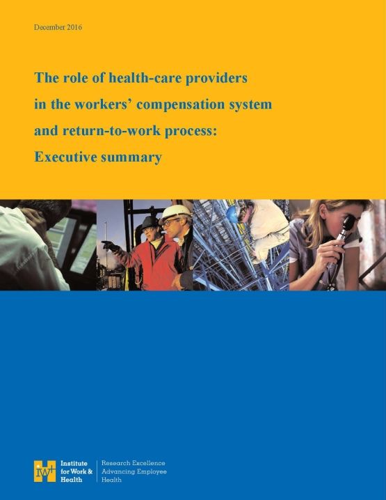 Studies suggest health-care providers can struggle with managing RTW consultations, especially when injuries are more complex. Time pressures, administrative challenges and limited knowledge about a patient’s workplace can thwart active engagement. This executive summary provides an overview of the findings of a two-year study that focused on health-care providers’ experiences within four Canadian workers’ compensation systems and their role in return to work after injury or illness.